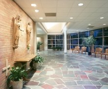 The St. Joan of Arc Parish Center is a 10,000 S.F. addition to an existing church and elementary school. Project includes a multi-use parish center (gymnasium with stage for school functions and various parish activities), and a new gathering space at the front of the church. The project transforms the existing non-distinctive facade into a recognizable church form. The facility has four different levels, all of which are now served by a new strategically-placed elevator. Project site was an extremely tight urban lot. All new work was done without losing any parking stalls after rearrangement of the parking layout. The addition works around the carillon, which is retained in its original position. KHA worked extensively with a design committee, and made presentations to the congregation to explain the committee's decisions.